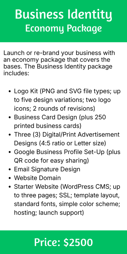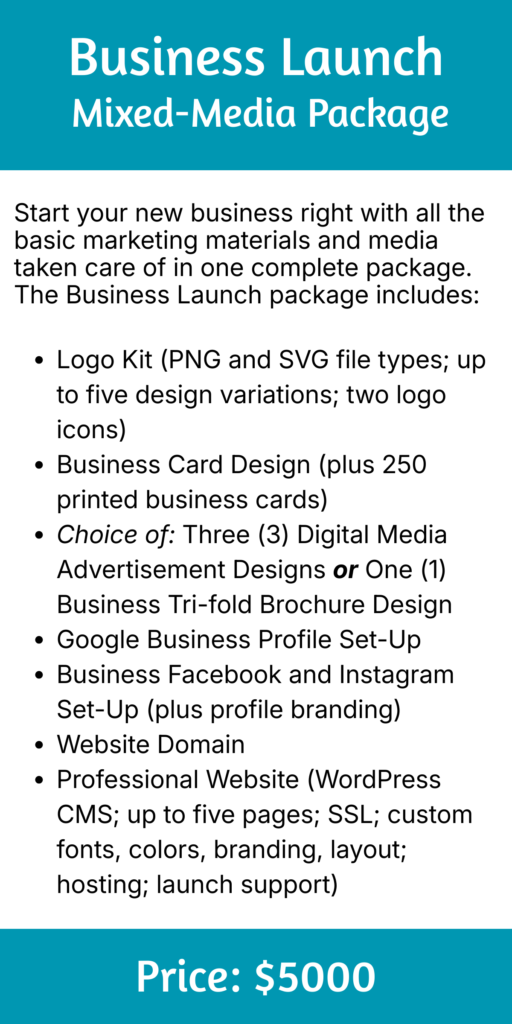 All print media will be delivered to you (the client) formatted into print-ready files according to your design specifications. If you are unsure of your printer’s formatting requirements, we can work with your printer directly to ensure graphic files are delivered print-ready.